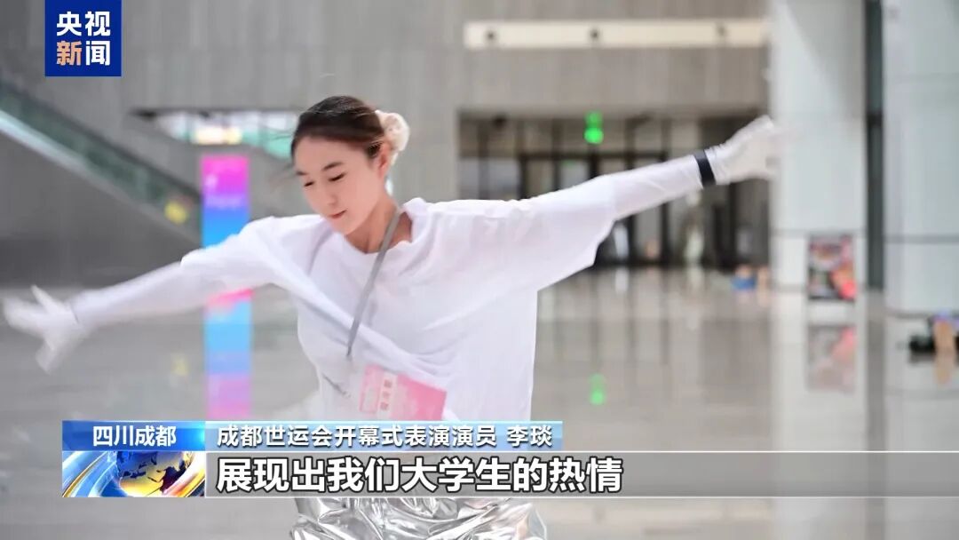 成都世運(yùn)會開幕式表演演員表示,《繽紛之約》的音樂一聽起來就會讓人有積極向上的感覺,展現(xiàn)出自己的特長,展現(xiàn)出我們大學(xué)生的熱情。